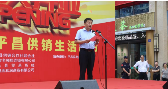 7月20日,老鄰居?平昌供銷生活超市隆重開業(yè)。省供銷社企業(yè)發(fā)展與金融服務(wù)處處長(zhǎng)楊韜,省老鄰居連鎖公司董事長(zhǎng)許宏勇及省供投集團(tuán)部分子公司負(fù)責(zé)人,巴中市供銷社黨組書記、理事會(huì)主任劉羽,平昌縣委副書記、縣長(zhǎng)杜小兵,縣委常委、副縣長(zhǎng)李寶出席活動(dòng)。平昌縣委副書記曹光輝代表縣委政府致辭。省供銷投資集團(tuán)董事長(zhǎng)茍學(xué)川宣布正式開業(yè)。
